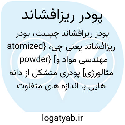 {atomized powder} [مهندسی مواد و متالورژی] پودری متشکل از دانه هایی با اندازه های متفاوت که از پراکنش مادۀ قابل ذوب در جریان پیوسته و سریع یک سیال حاصل می شود