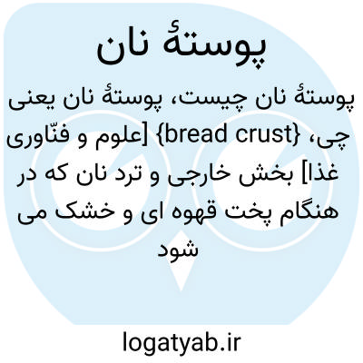 {bread crust} [علوم و فنّاوری غذا] بخش خارجی و ترد نان که در هنگام پخت قهوه ای و خشک می شود