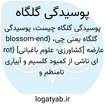 {blossom-end rot} [کشاورزی- علوم باغبانی] عارضه ای ناشی از کمبود کلسیم و آبیاری نامنظم و دمای زیاد که به صورت لکه های کوچک آبگز در گلگاه میوۀ گیاهان ایجاد می شود؛ این لکه ها بعداً قهوه ای و خشک می شوند