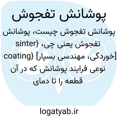 {sinter coating} [خوردگی، مهندسی بسپار] نوعی فرایند پوشانش که در آن قطعه را تا دمای تفجوشی گرما می دهند و در پودر پلاستیک غوطه ور می کنند، سپس آن را بیرون می کشند و دمای آن را به قدری بالا می برند تا پودری که به سطح چسبیده است، جوش بخورد و پوستۀ یکپارچه ای را روی قط...