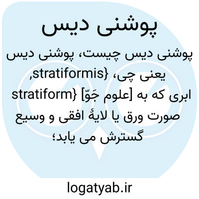 {stratiformis, stratiform} [علوم جَوّ] ابری که به صورت ورق یا لایۀ افقی و وسیع گسترش می یابد؛ این اصطلاح همراه با ابرهای فرازکومه ای و پوشن کومه ای و گاهی پرساکومه ای می آید