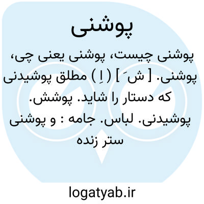 پوشنی. [ ش َ ] ( اِ ) مطلق پوشیدنی که دستار را شاید. پوشش. پوشیدنی. لباس. جامه: و پوشنی ستر زنده و مرده است. نظام قاری ( دیوان البسه ص 108 ). || ظاهراً پارچه و جامه تنک و نازک است: