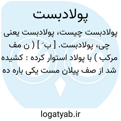 ( صفت ) با پولاد استوار کرده با فولاد محکم شده: کشیده شد از صف پیلان مست یکی باره ده میل پولاد بست. ( گرشاسب نامه )