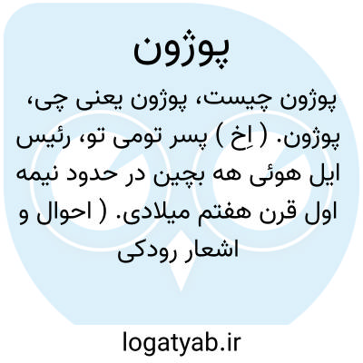 پوژون. ( اِخ ) پسر تومی تو، رئیس ایل هوئی هه بچین در حدود نیمه اول قرن هفتم میلادی. ( احوال و اشعار رودکی ج 1 ص 193 ).