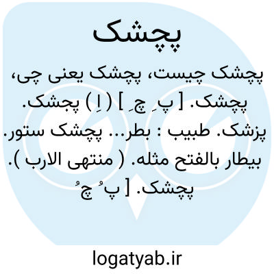 پچشک. [ پ ِ چ ِ ] ( اِ ) پجشک. پزشک. طبیب: بطر... پچشک ستور. بیطار بالفتح مثله. ( منتهی الارب ).