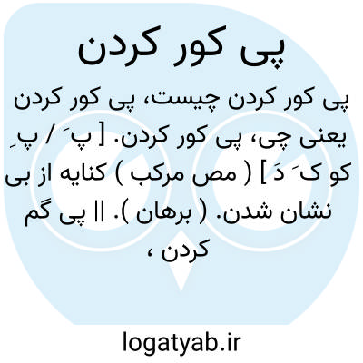 پی کور کردن. [ پ َ / پ ِ کو ک َ دَ ] ( مص مرکب ) کنایه از بی نشان شدن. ( برهان ). || پی گم کردن، مقابل پی بردن ( انجمن آرا ). || محو کردن رد پای تا کسی بدان پی نتواند برد. ( انجمن آرا ):