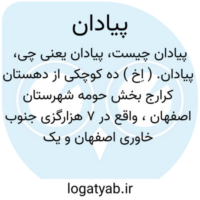 پیادان. ( اِخ ) ده کوچکی از دهستان کرارج بخش حومه شهرستان اصفهان، واقع در 7 هزارگزی جنوب خاوری اصفهان و یک هزارگزی راه کرارج ببراگون. دارای 22 تن سکنه. ( از فرهنگ جغرافیائی ایران ج 10 ).