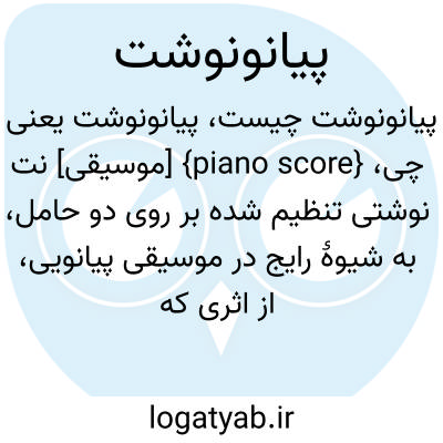 {piano score} [موسیقی] نت نوشتی تنظیم شده بر روی دو حامل، به شیوۀ رایج در موسیقی پیانویی، از اثری که برای سازگان/ ارکستر یا گروه هم نوایی نوشته شده است