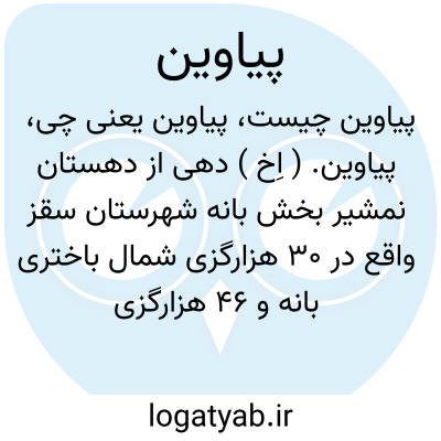 پیاوین. ( اِخ ) دهی از دهستان نمشیر بخش بانه شهرستان سقز واقع در 30 هزارگزی شمال باختری بانه و 46 هزارگزی شمال خاور شوسه بانه بسردشت. کوهستانی، سردسیر، دارای 105 تن سکنه. آب آن از چشمه. محصول آنجا غلات و لبنیات و ارزن و محصولات جنگلی. شغل اهالی زراعت و گله داری. راه آن مالرو است. ( فرهنگ جغرافیایی ایران ج 5 ).