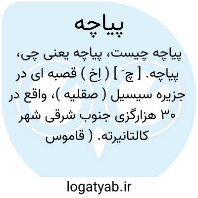 پیاچه. [ چ َ ] ( اِخ ) قصبه ای در جزیره سیسیل ( صقلیه )، واقع در 30 هزارگزی جنوب شرقی شهر کالتانیرته. ( قاموس الاعلام ترکی ).