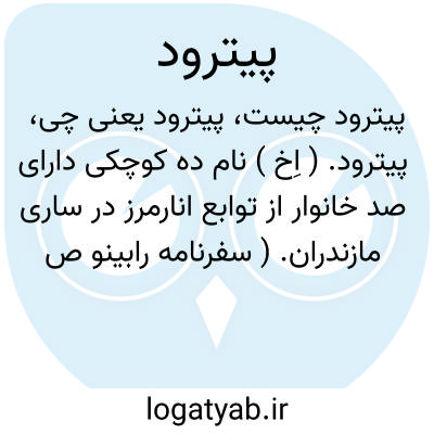 پیترود. ( اِخ ) نام ده کوچکی دارای صد خانوار از توابع انارمرز در ساری مازندران. ( سفرنامه رابینو ص 48 و 49 بخش انگلیسی ).