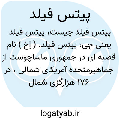 پیتس فیلد. ( اِخ ) نام قصبه ای است در جمهوری ایلیونیس از جماهیر متحده آمریکای شمالی واقع در 103 هزارگزی جنوب غربی اسپرینگفیلد، در محل تلاقی دو خط آهن دارای تجارتی پررونق و کارخانجات تنباکو. ( قاموس الاعلام ترکی ).