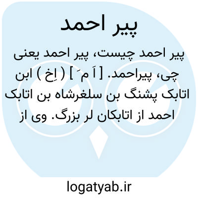 پیراحمد. [ اَ م َ ] ( اِخ ) ابن اتابک پشنگ بن سلغرشاه بن اتابک احمد از اتابکان لر بزرگ. وی از سال 792 تا 798 هَ. ق. امارت داشته است. رجوع بتاریخ مغول اقبال ص 448 و تاریخ عصر حافظ ج 1 ص 440 شود.