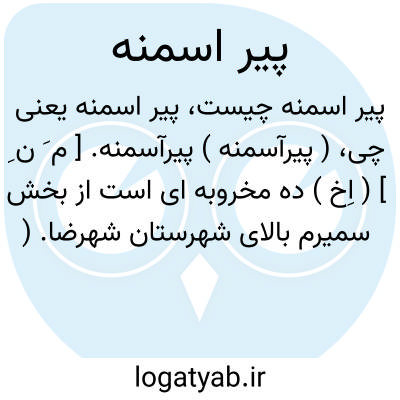( پیرآسمنه ) پیرآسمنه. [ م َ ن ِ ] ( اِخ ) ده مخروبه ای است از بخش سمیرم بالای شهرستان شهرضا. ( فرهنگ جغرافیائی ایران ج 10 ).