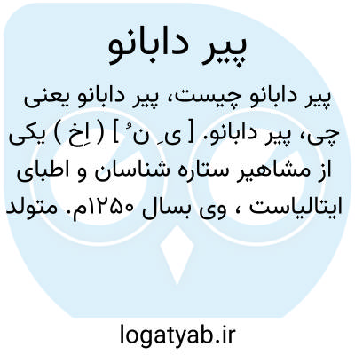 پیر دابانو. [ ی ِ ن ُ ] ( اِخ ) یکی از مشاهیر ستاره شناسان و اطبای ایتالیاست، وی بسال 1250م. متولد شد و بسال 1316 درگذشت. در پادووه تدریس علم طب کرد و برخی از آثار طبی و فلسفی نیزبوجود آورد. اعضای انگیزیسیون وی را بسحر و جادو متهم و محکوم به احراق کردند ولی وی قبل از چشیدن این جزای مدهش بمرگ طبیعی درگذشت. ( قاموس الاعلام ترکی ).