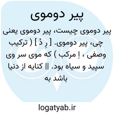 پیر دوموی. [ رِ دُ ] ( ترکیب وصفی، اِ مرکب ) که موی سر وی سپید و سیاه بود. || کنایه از دنیا باشد به اعتبار شب و روز. ( برهان ). استعاره است برای دنیا که به اعتبار شب و روز تشبیه به پیری شده است که موهای سفید وسیاه دارد. ( فرهنگ نظام ). زمانه که ابلق نیز گویند بواسطه روز و شب: