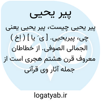 پیریحیی. [ ی َ یا ] ( اِخ ) الجمالی الصوفی. از خطاطان معروف قرن هشتم هجری است از جمله آثار وی قرآنی است بخط بسیار خوب ثلث مورخ بتاریخ 745 و 746 هَ. ق. که بدست اساتید هنر تذهیب و تزیین شده است و آنرا در سال 777 خواجه جلال الدین تورانشاه وزیر بر مسجد عتیق شیراز وقف کرده است و از آن قرآن 24 جزء در دوازده مجلد در موزه شیراز موجود است. و نیز کتیبه ای در جامع شیراز در قسمت موسوم به خانه خدا هست که قسمت اعظم آن بسبب طول زمان ریخته است اما از جمله عباراتی که مانده یکی نام ابواسحاق جمال الملة والدین است و دیگر تاریخ تعمیر و عبارت «کتبه یحیی الجمالی » یعنی همین خوشنویس. ( تاریخ عصر حافظ ج 1 ص 77 و 141 و 268 ).