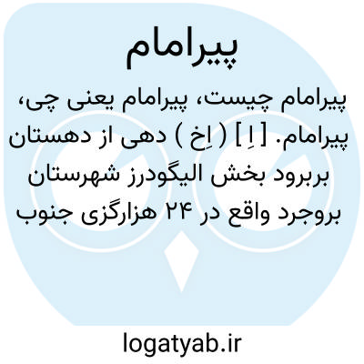 پیرامام. [ اِ ] ( اِخ ) دهی از دهستان بربرود بخش الیگودرز شهرستان بروجرد واقع در 24 هزارگزی جنوب الیگودرز. کنار راه مالرو پرت پل به جاخشک. کوهستانی، معتدل. دارای 138 تن سکنه. آب آن از چاه و قنات محصول آنجا غلات و تریاک. شغل اهالی زراعت و راه آن مالرو است. ( فرهنگ جغرافیایی ایران ج 6 ).