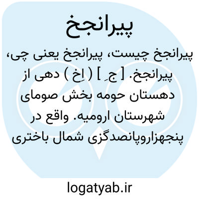 پیرانجخ. [ ج ِ ] ( اِخ ) دهی از دهستان حومه بخش صومای شهرستان ارومیه. واقع در پنجهزاروپانصدگزی شمال باختری هشتیان و ششهزارگزی شمال باختری راه ارابه رو هشتیان. دامنه، سردسیر، سالم. دارای 245 تن سکنه. آب آن از جویبار قولشکل و محصول آنجا غلات، توتون. شغل اهالی زراعت و گله داری. صنایع دستی جاجیم بافی. راه آنجا مالرو است. ( این ده را لیوارجان نیز میگویند ). ( فرهنگ جغرافیایی ایران ج 4 ).
