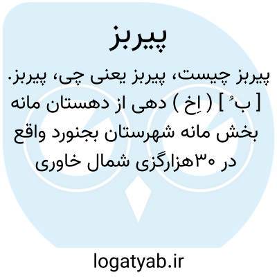 پیربز. [ ب ُ ] ( اِخ ) دهی از دهستان مانه بخش مانه شهرستان بجنورد واقع در 30هزارگزی شمال خاوری مانه و 11هزارگزی باختر شوسه عمومی بجنورد به حصارچه. دامنه، معتدل. دارای 335 تن سکنه. آب آن از چشمه. محصول آنجا غلات و تریاک و بنشن. شغل اهالی زراعت و مالداری و راه آن مالرو است. ( فرهنگ جغرافیایی ایران ج 9 ).