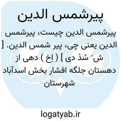 پیر شمس الدین. [ ش َ سُدْ دی ] ( اِخ ) دهی از دهستان جلگه افشار بخش اسدآباد شهرستان همدان. واقع در 18هزارگزی جنوب باختر قصبه اسدآباد و 4هزارگزی باختر شوسه اسدآباد به کنگاور. جلگه،سردسیر، مالاریائی. دارای 240 تن سکنه. آب آن از قنات. محصول آنجا غلات و لبنیات و حبوبات. شغل اهالی زراعت و گله داری. صنایع دستی جاجیم بافی و راه آن در تابستان اتومبیل رو است. ( فرهنگ جغرافیایی ایران ج 5 ).