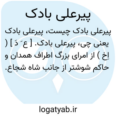 پیرعلی بادک. [ ع َ دَ ] ( اِخ ) از امرای بزرگ اطراف همدان و حاکم شوشتر از جانب شاه شجاع. ویرا با سلطان احمدبن سلطان اویس جلایر محاربه ای است که در آن بقتل رسیده است. رجوع به تاریخ گزیده ص 721، 722 و حبیب السیر ج 3 چ خیام ص 245، 247 و تاریخ عصر حافظ ج 1 ص 305 و تاریخ مغول ص 461 و ذیل جامعالتواریخ رشیدی ص 205، 208، 213، 214، 215، 216، 223، 224 شود.