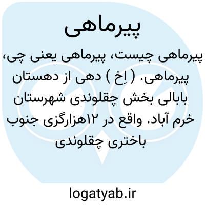 پیرماهی. ( اِخ ) دهی از دهستان بابالی بخش چقلوندی شهرستان خرم آباد. واقع در 12هزارگزی جنوب باختری چقلوندی و 4هزارگزی باختر راه شوسه خرم آباد به چقلوندی. دامنه، سردسیر، مالاریائی. دارای 210 تن سکنه. آب آن از سراب پیرماهی. محصول آنجا غلات و تریاک و لبنیات و صیفی. شغل اهالی زراعت و گله داری و راه آن مالرو است. صنایع دستی زنان سیاه چادربافی است. ساکنین از طایفه نقی میباشند. عده ای دارای ساختمان و عده ای درسیاه چادر سکونت دارند و برای تعلیف احشام در حوالی ییلاق و قشلاق میروند. ( فرهنگ جغرافیایی ایران ج 6 ).