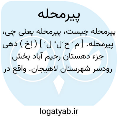 پیرمحله. [ م َ ح َل ْ ل َ ] ( اِخ ) دهی جزء دهستان رحیم آباد بخش رودسر شهرستان لاهیجان. واقع در 9هزارگزی جنوب رودسر و 4هزارگزی شمال رحیم آباد. جلگه، معتدل، مرطوب. دارای 283 تن سکنه گیلکی و فارسی زبان. آب آن از نهر پلرود. محصول آنجا برنج. شغل اهالی زراعت و راه آن مالرو است. گنبدی آجری به ارتفاع 15 متر از آثار ابنیه قدیم و دبستانی 4 کلاسه دارد. ( فرهنگ جغرافیایی ایران ج 2 ).