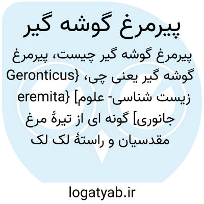 {Geronticus eremita} [زیست شناسی- علوم جانوری] گونه ای از تیرۀ مرغ مقدسیان و راستۀ لک لک سانان به رنگ سبز تیره با جلای ارغوانی که جلوی سرش برهنه است