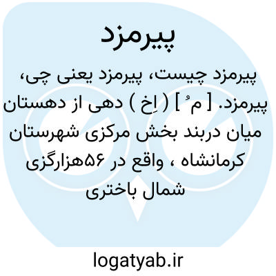 پیرمزد. [ م ُ ] ( اِخ ) دهی از دهستان میان دربند بخش مرکزی شهرستان کرمانشاه، واقع در 56هزارگزی شمال باختری کرمانشاه و 1500گزی باختر شوسه سنندج. دشت سردسیر، دارای 100 تن سکنه. آب آن از رودخانه رازآور. محصول آنجا غلات و حبوبات دیم و لبنیات. شغل اهالی زراعت است و از برنجان اتومبیل میتوان برد. ( فرهنگ جغرافیایی ایران ج 5 ).