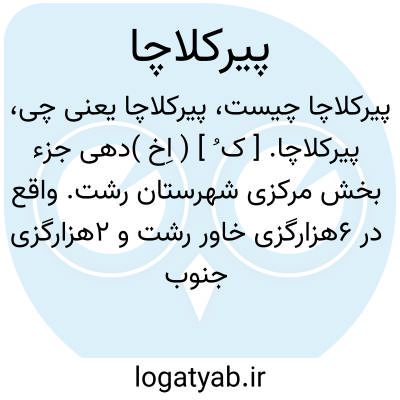 پیرکلاچا. [ ک ُ ] ( اِخ )دهی جزء بخش مرکزی شهرستان رشت. واقع در 6هزارگزی خاور رشت و 2هزارگزی جنوب شوسه رشت به لاهیجان. جلگه،مرطوب، دارای 718 تن سکنه. آب آن از خمام رود و کلاک رود. محصول آنجا ابریشم و صیفی کاری. شغل اهالی زراعت و راه آن مالرو است. ( فرهنگ جغرافیایی ایران ج 2 ).