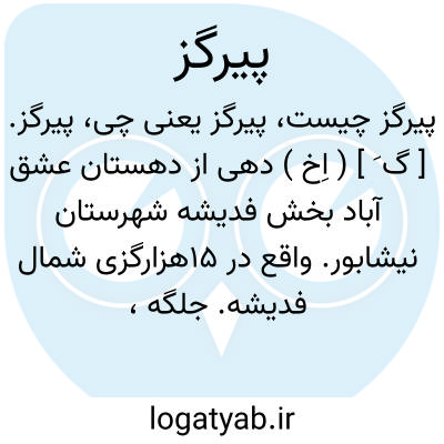 پیرگز. [ گ َ ] ( اِخ ) دهی از دهستان عشق آباد بخش فدیشه شهرستان نیشابور. واقع در 15هزارگزی شمال فدیشه. جلگه، معتدل. دارای 143 تن سکنه. آب آن از قنات. محصول آنجا غلات و تریاک. شغل اهالی زراعت و مالداری و راه آن مالرو است. ( فرهنگ جغرافیایی ایران ج 9 ).