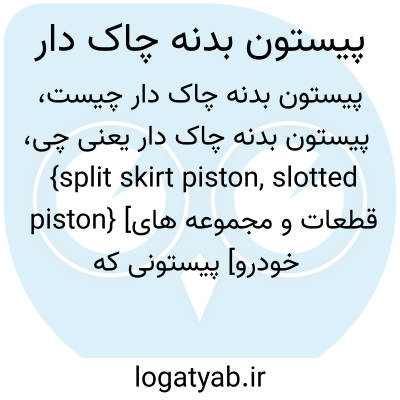 {split skirt piston, slotted piston} [قطعات و مجموعه های خودرو] پیستونی که برای جلوگیری از انبساط قطری در یک سوی بدنۀ آن شیاری طولی ایجاد شده است