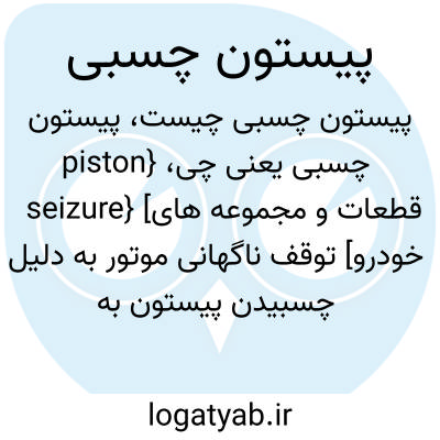 {piston seizure} [قطعات و مجموعه های خودرو] توقف ناگهانی موتور به دلیل چسبیدن پیستون به دیوارۀ سیلندر براثر حرارت بسیار بالا یا روان کاری ناکافی
