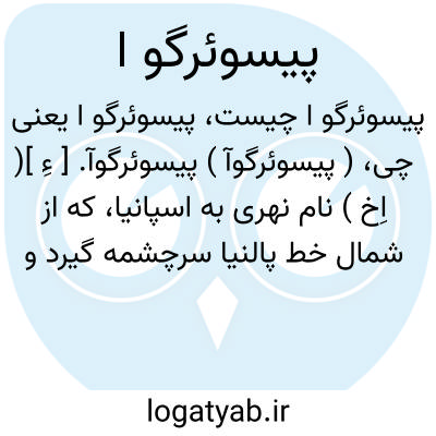 ( پیسوئرگوآ ) پیسوئرگوآ. [ ءِ ]( اِخ ) نام نهری به اسپانیا، که از شمال خط پالنیا سرچشمه گیرد و بسوی جنوب غربی جریان یابد و ایالات پالنیا، بورگوس، و والادولید را سیراب میسازد و پس از طی یک مسافت 250 هزارگزی برودخانه دوئرو پیوندد. رودهای اسگوا، آرلانزون و کاریون از توابع عمده این نهرند. ( قاموس الاعلام ترکی ).