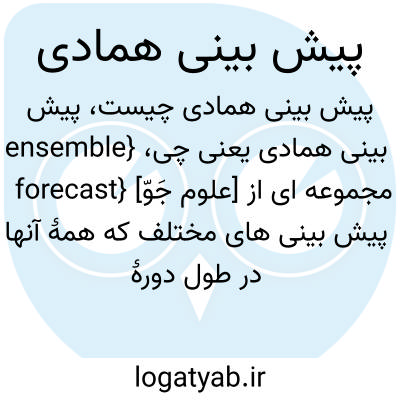 فرهنگستان زبان و ادب {ensemble forecast} [علوم جَوّ] مجموعه ای از پیش بینی های مختلف که همۀ آنها در طول دورۀ زمانی یکسان معتبرند