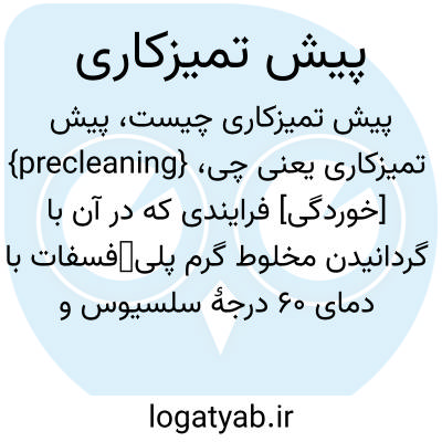 {precleaning} [خوردگی] فرایندی که در آن با گردانیدن مخلوط گرم پلیفسفات با دمای 60 درجۀ سلسیوس و ضدکف با پ.هاش حدود 5/5 تا 7 در کل سامانۀ خنککنندۀ آب، آلودگی هایی مانند گریس و روغن و محصولات خوردگی را از سطح تجهیزات فلزی نو میزدایند تا بتوان با فیلم (film ) بازدا...