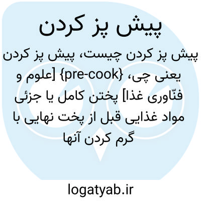 {pre-cook} [علوم و فنّاوری غذا] پختن کامل یا جزئی مواد غذایی قبل از پخت نهایی با گرم کردن آنها