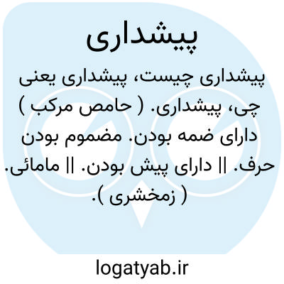 پیشداری. ( حامص مرکب ) دارای ضمه بودن. مضموم بودن حرف. || دارای پیش بودن. || مامائی. ( زمخشری ). قابلگی. مام نافی. پیش نشینی.