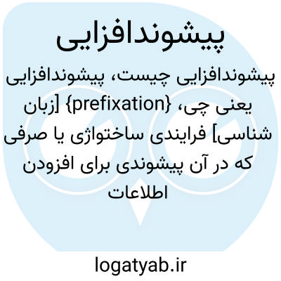 {prefixation} [زبان شناسی] فرایندی ساختواژی یا صرفی که در آن پیشوندی برای افزودن اطلاعات دستوری یا واژگانی به ستاک یا ریشه یا پایه بپیوندد
