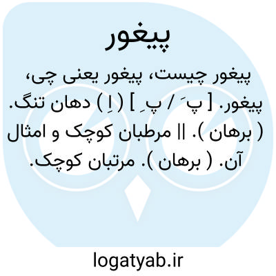 لغت نامه دهخدا پیغور. [ پ َ / پ ِ ] ( اِ ) دهان تنگ. ( برهان ). || مرطبان کوچک و امثال آن. ( برهان ). مرتبان کوچک.