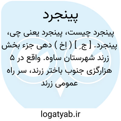پینجرد. [ ج ِ ] ( اِخ ) دهی جزء بخش زرند شهرستان ساوه. واقع در 5 هزارگزی جنوب باختر زرند، سر راه عمومی زرند ساوه. دامنه. معتدل. دارای 93 تن سکنه فارسی زبان. آب آنجا از قنات لب شور. محصول آن غلات و پنبه و چغندر قند و بستان کاری و بنشن و انگورو زردآلو. شغل اهالی آنجا زراعت و گلیم و جوال بافی و راه آن ماشین روست. ( فرهنگ جغرافیائی ایران ج 1 ).