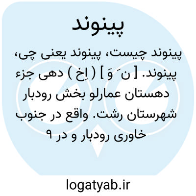 پینوند. [ ن َ وَ ] ( اِخ ) دهی جزء دهستان عمارلو بخش رودبار شهرستان رشت. واقع در جنوب خاوری رودبار و در 9 هزارگزی باختر شوئیل. کوهستانی، سردسیر. دارای 210 تن سکنه. آب آن از چشمه، محصول آنجا غلات، شغل اهالی آنجا زراعت و کسب و شال بافی. راه آن مالرو و صعب العبور است. ( فرهنگ جغرافیائی ایران ج 2 ).
