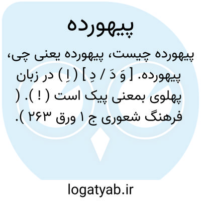 لغت نامه دهخدا پیهورده. [ وَ دَ / دِ ] ( اِ ) در زبان پهلوی بمعنی پیک است ( ! ). ( فرهنگ شعوری ج 1 ورق 263 ).