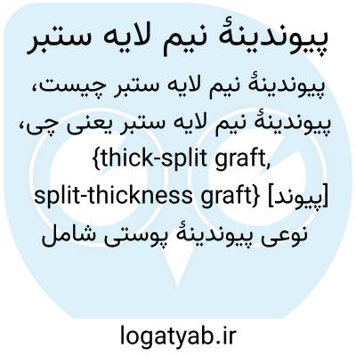 {thick-split graft, split-thickness graft} [پیوند] نوعی پیوندینۀ پوستی شامل روپوست که ضخامت آن تقریباً دوسوم پیوندینۀ تمام لایه است