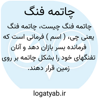 ( ~. فَ ) (اِمر. ) = چاتمه تفنگ: فرمانی است که فرمانده به سربازان دهد و آنان تفنگ های خود را به شکل چاتمه بر روی زمین قرار دهند.