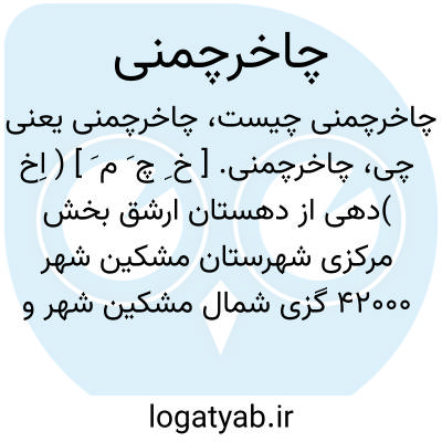 چاخرچمنی. [ خ ِ چ َ م َ ] ( اِخ )دهی از دهستان ارشق بخش مرکزی شهرستان مشکین شهر 42000 گزی شمال مشکین شهر و 8000 گزی شوسه گرمی اردبیل. کوهستانی، معتدل. با 159 تن سکنه. آب آن از چشمه، محصول آن: غلات و حبوبات، شغل اهالی زراعت و گله داری و راه آن مالرو است. ( فرهنگ جغرافیایی ایران ج 4 ).