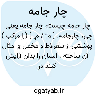 چارجامه. [ م َ / م ِ ] ( اِ مرکب ) پوششی از سقرلاط و مخمل و امثال آن ساخته، اسبان را بدان آرایش کنند در حالت پیری و اسبی را که آن را زین نبندند و لجام کرده غاشیه بر آن اندازند و سوار شوند. ( آنندراج ):