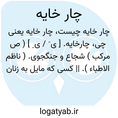 چارخایه. [ ی َ / ی ِ ] ( ص مرکب ) شجاع و جنگجوی. ( ناظم الاطباء ). || کسی که مایل به زنان باشد. ( ناظم الاطباء ). || کنایه از مفسد و محیل. ( آنندراج ).