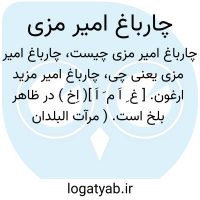 لغت نامه دهخدا چارباغ امیر مزید ارغون. [ غ ِ اَ م َ اَ ]( اِخ ) در ظاهر بلخ است. ( مرآت البلدان ج 4 ص 35 ).